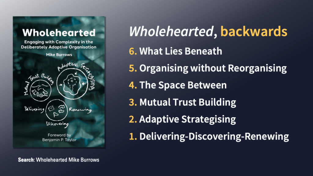 Wholehearted: Engaging with Complexity in the Deliberately Adaptive Organisation hit Amazon last week. You can find both print and Kindle editions on amazon.co.uk, amazon.com, amazon.de and other Amazon sites around the world. The e-book is also available on LeanPub, Kobo, Apple Books, and Google Play Books.
